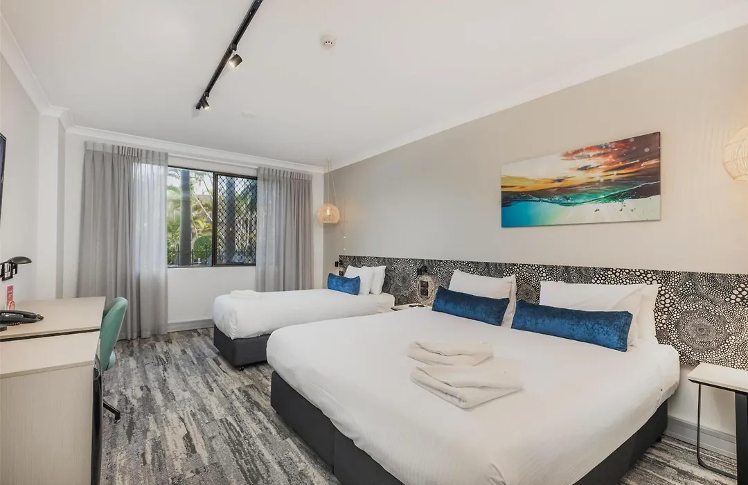 Some of the 125 non-smoking rooms at Nightelier Mermaid Waters hotel face the pool and comprise a patio and a sitting area.